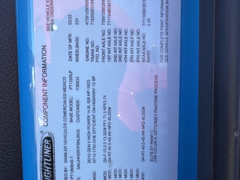 | Engine | Detroit DD15 505HP 6 Cyl |
