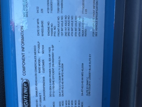 | Engine | Detroit DD15 505HP 6 Cyl |