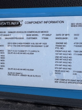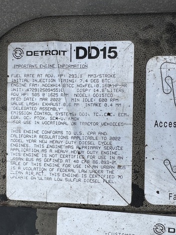 | Engine | Detroit DD15 505HP |